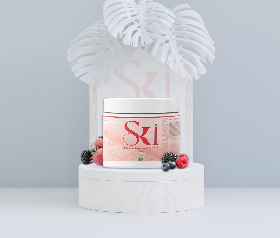 SKI COLLAGEN is a delicious and nutritious drink mix packed with amino acids, hydrolyzed bovine collagen peptides, vitamins and minerals. This unique blend of vitamins and collagen peptides helps support naturally all skin types, immune system and joint function
